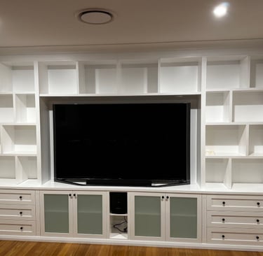 We also build entertainment centers, media walls, fireplace built-ins, and living room storage that integrates seamlessly with your home's architecture.